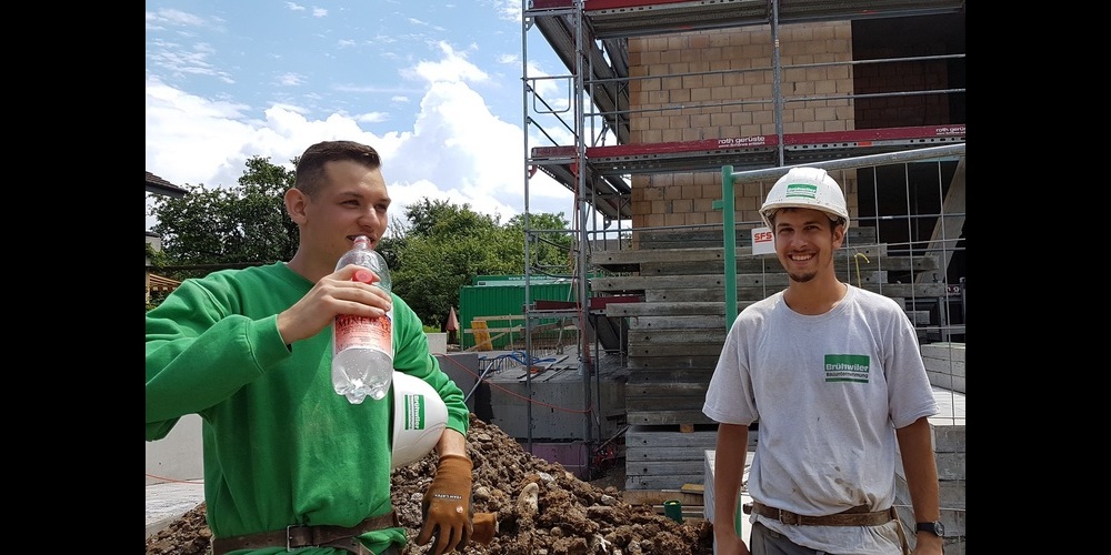 Dominik Eigenmann (Brühwiler Bauunternehmung AG) war die erste Juli-Woche bei der Raiffeisenbank Regio Uzwil tätig und begleitete Andrin Scherrer während seiner Arbeit. Diese Woche ist es nun umgekehrt: Der "Banker" Andrin Scherrer "chrampft" auf einer MFH-Baustelle in Oberbüren, angeleitet und unterstützt von Dominik Eigenmann.