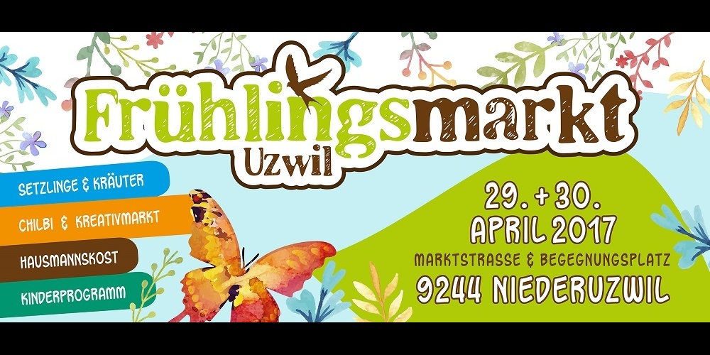 10.00 bis 17.00 Uhr: Frühlingsmarkt Marktstrasse – Marktplatz – Begegnungsplatz Niederuzwil Gemeinde Uzwil/Kulturbär