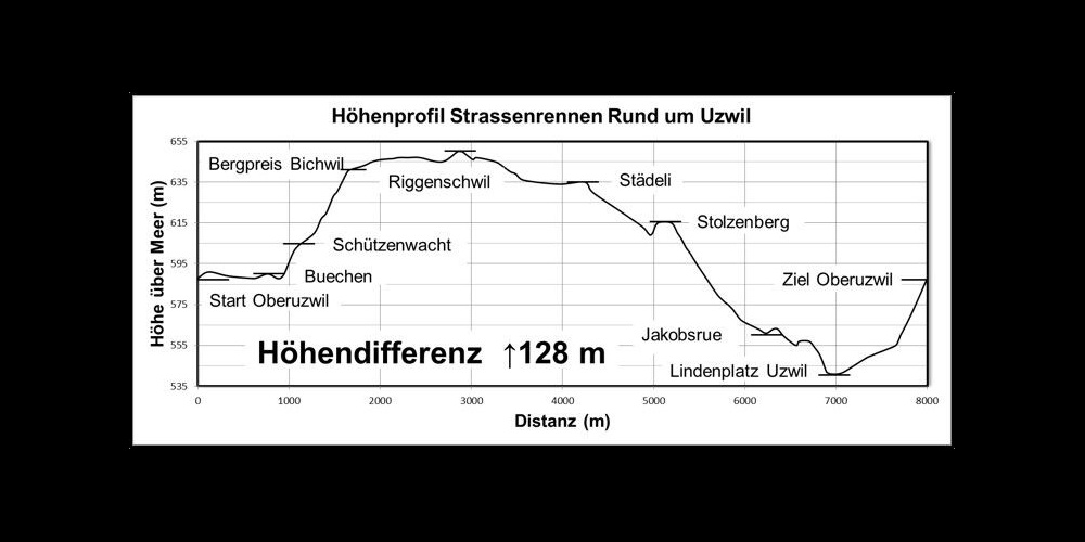 Der acht Kilometer lange Rundkurs mit total 128 Höhenmetern bleibt gegenüber 2015 unverändert. Start und Ziel befindet sich an der Morgenstrasse in Oberuzwil auf der Höhe der Einmündung der Rosenbühlstrasse. Die Hauptschwierigkeiten der Strecke sind die stufenartige Steigung nach Bichwil und vor allem die 300 Meter lange und durchgehend 10 Prozent steile Zielgerade. Was das Rennen zusätzlich erschwert, ist das Fehlen einer Erholungsmöglichkeit nach den beiden Steigungen. Die rund 2,5 km lange Abfahrt beginnt erst nach einem längeren Flachstück beim Städeli und endet nach mehreren rasanten Kurven beim Lindenkreisel in Uzwil.