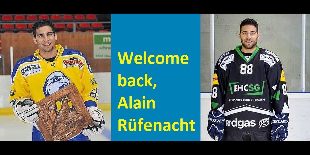 Mit Alain Rüfenacht (Jg. 1988) kehrt ein bekanntes Gesicht nach fünf Jahren zurück zu den Hawks. Mit seinen physischen Vorteilen (1,85 m, 85 kg) und seiner Powerplay-Stärke wird er ebenso ein Plus werden für die Hawks sein wie durch seine begeisternde Persönlichkeit als Vorbild für die jungen Spieler.