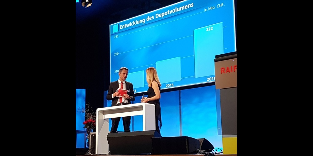 20:10 Uhr: Bankleiter Aldo Kopp stellt im Gespräch mit Moderatorin Regula Elsener die Kennzahlen der Bank sowie die speziellen Angebote für die Jugend vor.