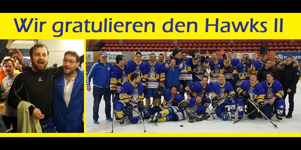 Im Finalspiel um den Regionalmeistertitel der 4. Liga OS (Region Ostschweiz) unterlagen die Hawks II als Sieger der Aufstiegsgruppe A am Samstag, 11. März 2017, auswärts gegen den EV Dielsdorf-Niederhasli, Sieger der Aufstiegsgruppe B, mit 1:4. Die Saison 2016/17 der Hawks II ist trotzdem von Erfolg gekrönt, denn beide 4. Liga-Topteams steigen als jeweilige Gruppensieger sportlich in die 3. Liga auf. Wir gratulieren!