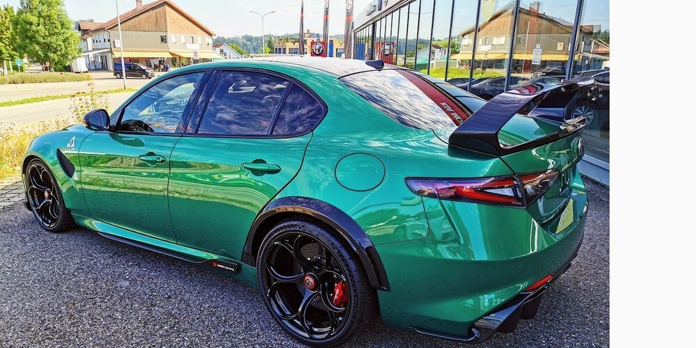 Durch die konsequente Verwendung leichter Materialien gelang Alfa Romeo eine Gewichtsreduktion um 100 Kilo im Vergleich zum Basismodell Giulia Quadrifoglio. Dazu trägt auch die Titan-Abgasanlage von Akrapovic bei, die in einen Kohlefaser-Diffusor eingebettet wird. Aber auch Kardanwelle, Motorhaube, Dach, Sitzschalen und Stossstangen sind im GTA-Modell aus Kohlefaser und reduzieren das Gewicht. Im Giulia GTAm verzichtet Alfa Romeo auf eine Rückbank und spart noch mehr Gewicht. So nähert sich die Sport-Limousine immer mehr der Rennstrecke, was durch Scheiben aus Polycarbonat (hinten), 6-Punkt-Gurte, einen Überrollbügel und Schlaufen statt Türöffner eindrucksvoll unter Beweis gestellt wird. Zusätzlich wurde bei beiden Modellvarianten Aerodynamik überarbeitet, um mehr Abtrieb zu generieren. Hier wurden die Kontakte zum Formel 1-Partner Sauber genutzt.