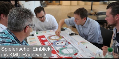 Unter dem Titel "Räderwerk KMU“ bot die Raiffeisenbank Regio Uzwil Firmenkunden Gelegenheit, Zusammenhänge und Abläufe im Unternehmen in einer Simulation durchzuspielen. 14 Unterne...