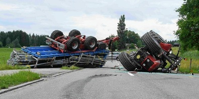 ARNEGG: TRAKTOR MIT ANHÄNGER GEKIPPT