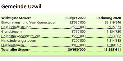 Gemeinde Uzwil: Einnahmen 3 Mio. über Budget 2020