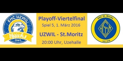 Nach der 0:2-Niederlage in der dritten Partie des Playoff-Viertelfinals reist der EHC Uzwil am Samstag, 27. Februar 2016, zum Spiel 4 nach St.Moritz. Gewinnen die Hawks, wird es am...