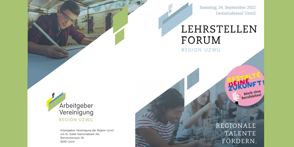Ziel des Lehrstellenforums ist es, den Schülerinnen und Schülern die Arbeitswelt aufzuzeigen und damit praktische Einblicke in die verschiedenen Berufe zu gewähren. Berufsbildner/innen stellen ihren Beruf und ihre Firma den interessierten Jugendlichen vor. So unterstützt die AGV Region Uzwil die Jugendlichen bei der Suche nach einem geeigneten Ausbildungsplatz. Gleichzeitig wird die Vielfalt der angebotenen Berufe in der Region Uzwil aufgezeigt.