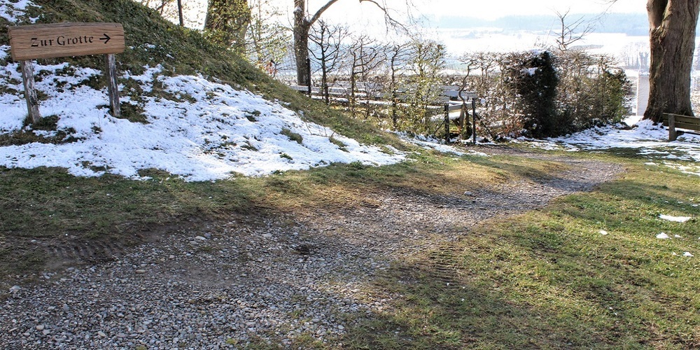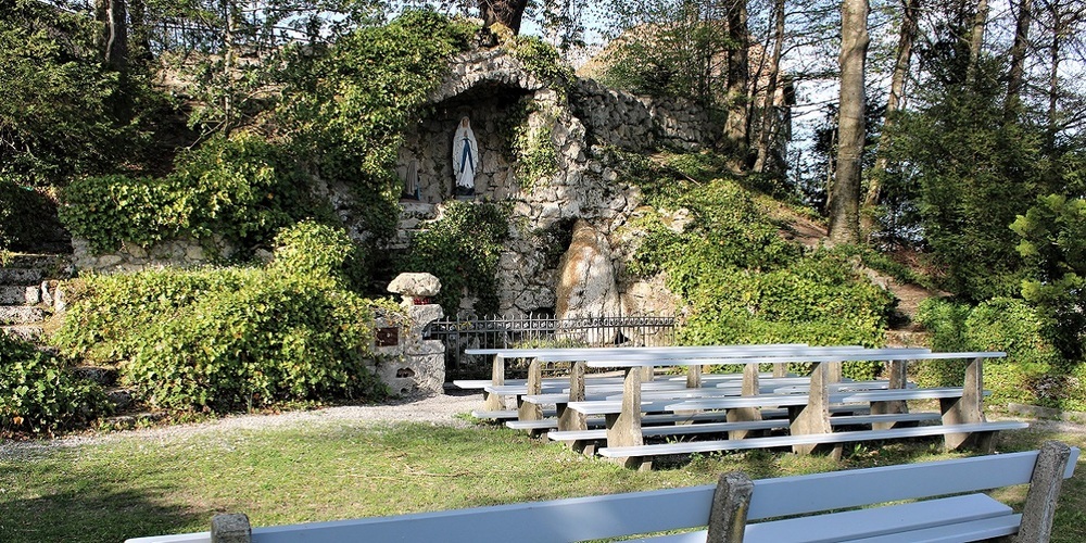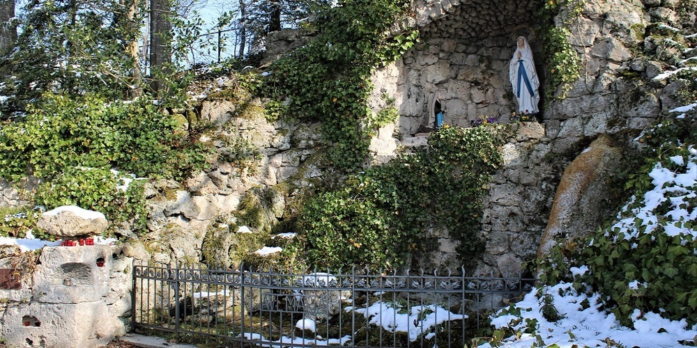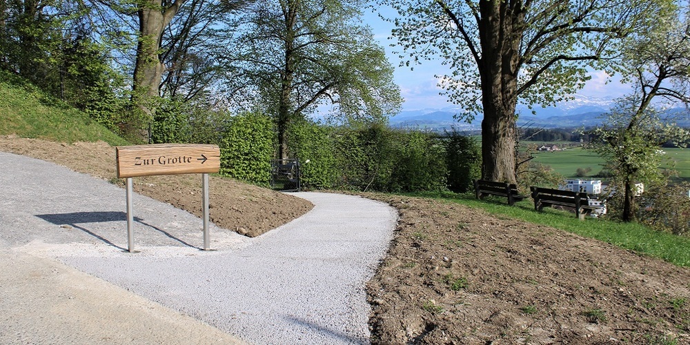Grotten haben als Stätten der Andacht und Marienverehrung in der katholischen Kirche seit der Erscheinung der Jungfrau Maria in Lourdes eine besondere Bedeutung. In zahlreichen Gemeinden wurden Nachbildungen der viel besuchten Gedenkstätte im südfranzösischen Wallfahrtsort angelegt. Dort erschien nach Überlieferungen 1858 die Jungfrau Maria dem Bauernmädchen Bernadette in der Felsenhöhle Massabielle. Der überzeugte Zuckenrieter Marienverehrer und langjährige Kapell- und Schulratspräsident Leo Jung (1898 – 1983) hegte aus innerem Antrieb den Wunsch, oberhalb des Dorfes ebenfalls eine Gedenkstätte für die Muttergottes zu erstellen. Auf seine Initiative konnte das in unmittelbarer Nähe des Schlosses liegende Grundstück nach jahrelangen, beharrlichen Verhandlungen erworben werden. Dank freiwilliger Spenden der Kapellgenossen und auswärtiger Gönner war dieser Kauf möglich. Einheimische Bauern und Handwerker erstellten darauf eine Lourdesgrotte, die im Mai 1935 durch Bischof Aloisius Schweiwiler eingeweiht wurde.