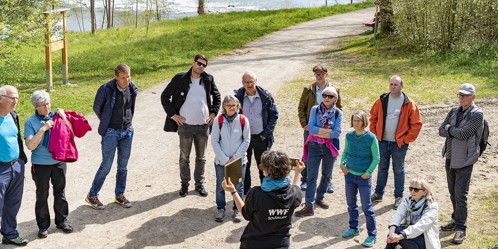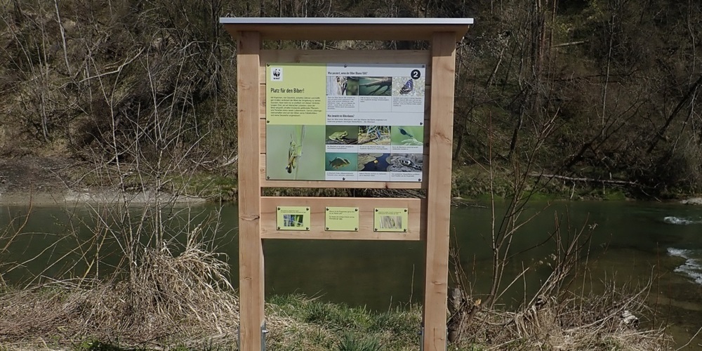 Projektleiterin Sieke Paysen vom WWF führt mit Kollegin Manuela Bissegger die Gästeschar entlag des langen Biberpfades. Zehn Infotafeln vermitteln Verblüffendes über den Pelzträger in spielerischer Art und Weise. Die Tafeln sind interaktiv gestaltet und regen zum Entdecken und Verweilen an. Spannende Quiz- und Schätzfragen motivieren zum lustvollen Lernen. «Wir vermitteln auf anschauliche Art Wissenswertes über den Biber und seinen Lebensraum, zum Beispiel wie Biber leben, wie sie sich ernähren und welche Bedeutung sie für die Menschen und die Umwelt haben», betont Paysen.