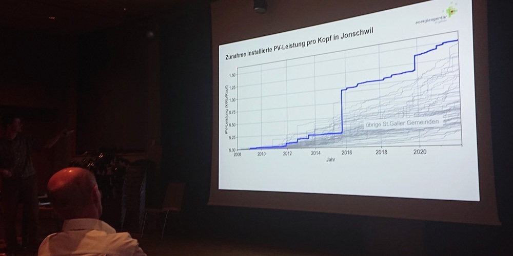 Hervorragend ist die Entwicklung bei der Produktion von Solarenergie in der Gemeinde Jonschwil. Dank der neuen PV-Anlage auf den Dächern der Holenstein AG ist Jonschwil kantonaler Spitzenreiter in der Pro-Kopf-Produktion von Solarstrom geworden. Und gemäss Präsident Stefan Frei kommt es schnell noch besser: ALDO Suisse AG wird das ganze Dach des Verteilzentrums mit einer PV-Anlage ausrüsten, der grössten im Kanton St.Gallen, und damit einen Autarkiegrad von 40% erreichen.
