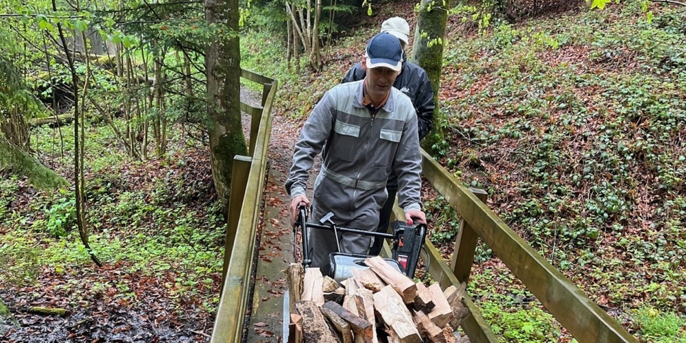15 Rotarierinnen und Rotarier waren am Samstagmorgen im Einsatz, haben insbesondere Brennholz für den Sommer gerüstet und zur Feuerstelle hochgekarrt. Pius Schäfler, der ursprüngliche Initiant, war immer noch dabei und stellte Gefährt und Werkzeuge zur Verfügung.