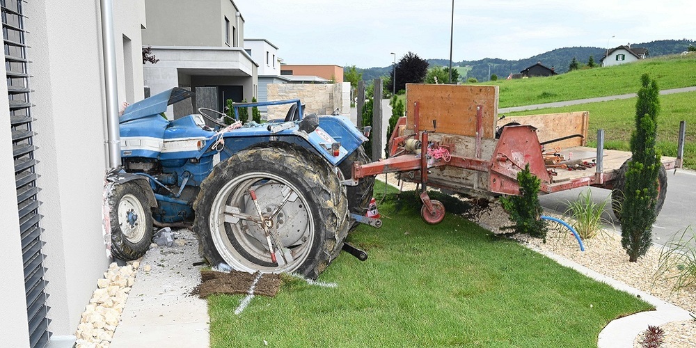 Ein 67-jähriger Mann beabsichtigte, ein Wiesland neu einzuzäunen. An einem Abhang stieg er vom Traktor ab und wollte eine Zaunstange in den Anhänger laden. Dabei geriet der Traktor ins Rollen. Der 67-jährige Mann bemerkte dies und versuchte, auf den rollenden Traktor aufzusteigen. Dabei wurde er vom Traktor überrollt und blieb unbestimmt verletzt am Boden liegen. Der Traktor rollte weiter den Abhang hinunter und krachte schliesslich gegen die Fassade eines Einfamilienhauses. Der 67-jährige Mann musste vom Rettungsdienst betreut und von der Rega ins Spital geflogen werden. Am Traktor entstand Totalschaden und die Fassade des Einfamilienhauses wurde stark beschädigt. Der Sachschaden beläuft sich auf mehrere tausend Franken.