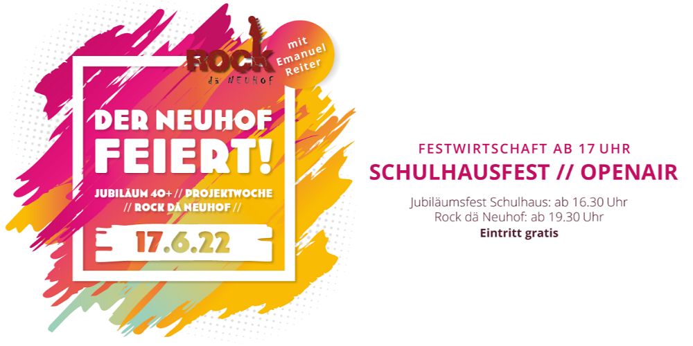 Unter diesem Motto hat sich das Elternforum Neuhof in Uzwil zusammengetan, um für die Schulgemeinde Uzwil und deren SchülerInnen im Sommer 2016, ein Openair auf die Beine gestellt. Im September 2018 wurde das Openair bereits zum zweiten Mal erfolgreich durchgeführt.