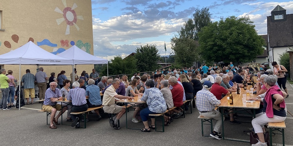 Am Donnerstag, 23. Juni 2022, hatte der Musikverein Uzwil-Henau beim Kindergarten / kath. Pfarreiheim Henau zum Sommerkonzert. In grosser Zahl kam das Publikum und genoss den schönen Sommerabend.