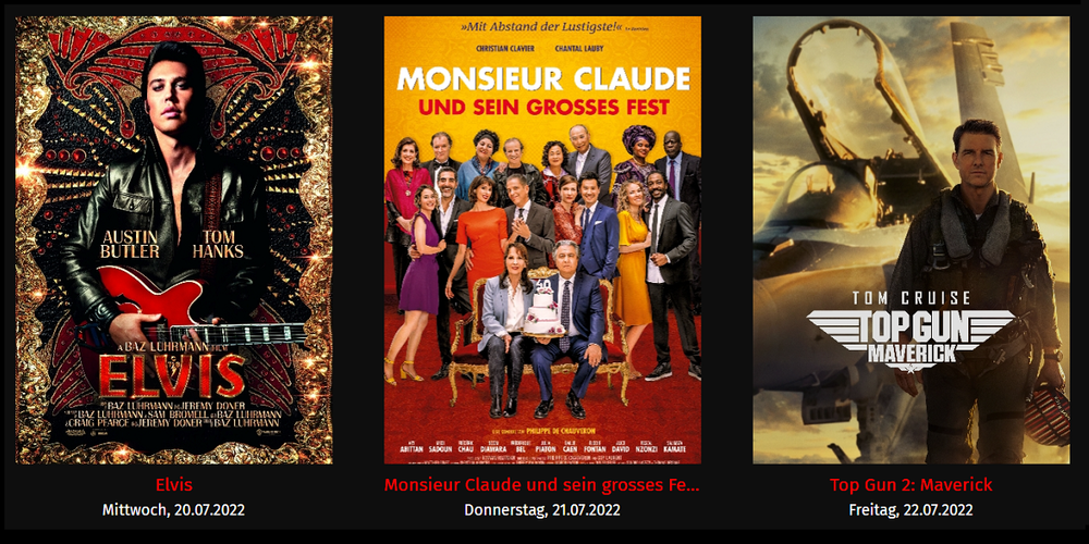 Filmbeginn? ca. 21:30 Uhr (ab dem 7. August ca. 21.15 Uhr)