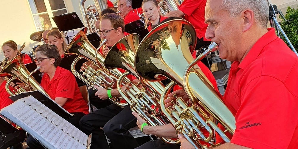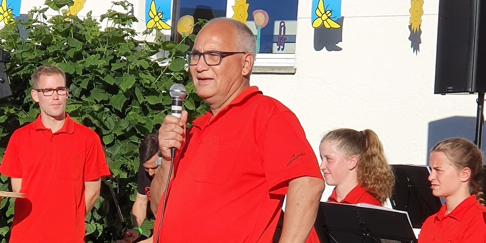 Nachdem alle mit Speis und Trank versorgt waren, eröffnete die Jugendmusik die Konzertstunde und zeigte, dass trotz Corona sehr intensiv geübt worden ist. Die fröhliche Schar bot den Anwesenden abwechslungsreiche Vorträge und eröffnete mit «Rock my Soul», dem weitere bestens vorbereitete Stücke folgten, zu denen au rhythmische Bewegungen gehörten. Der Fantasie des engagierten Dirigenten Reto Städler sind keine Grenzen gesetzt. Er findet immer wieder einen speziellen Gag.