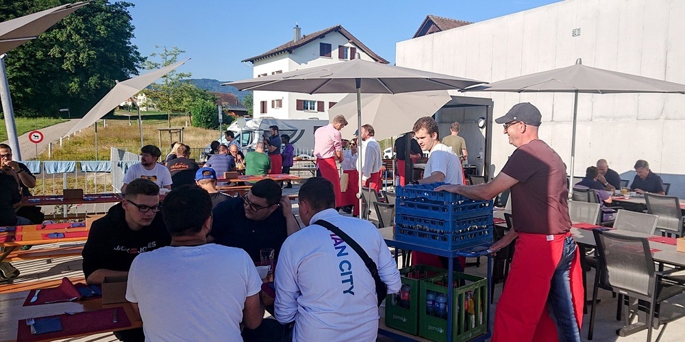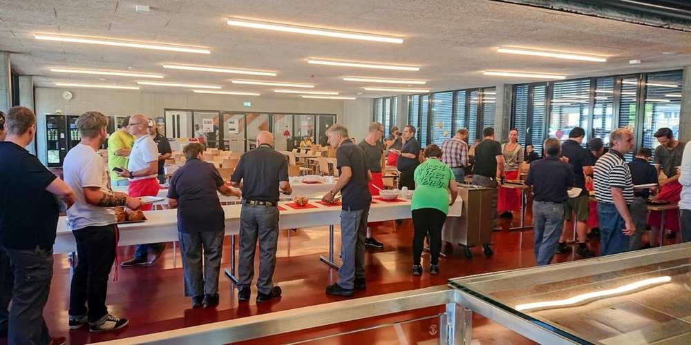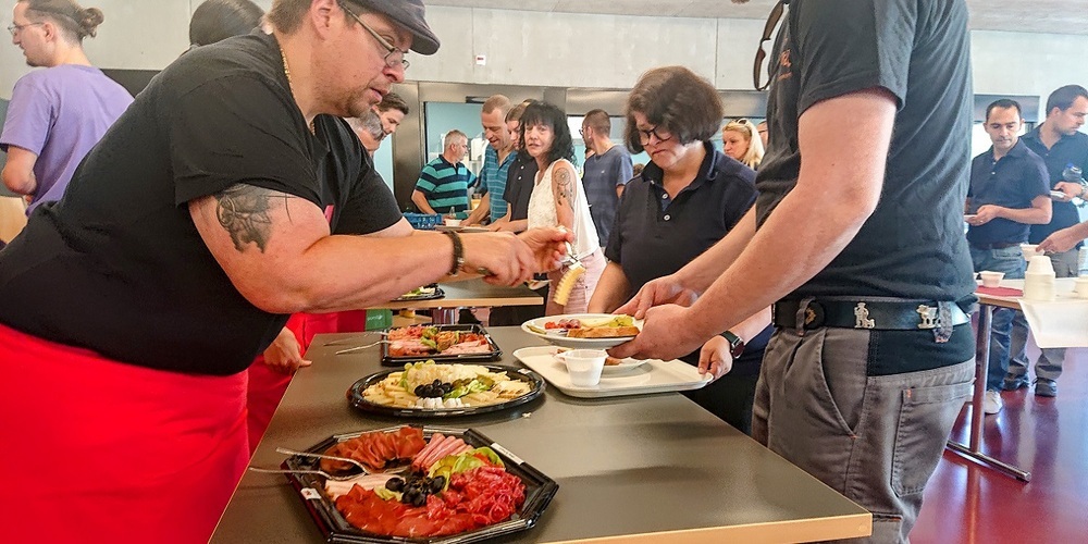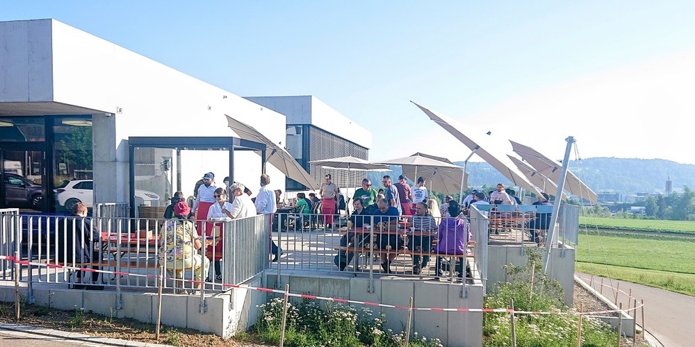 Mit einem feinen Brunch für die Mitarbeiter*innen mit Beeinträchtigungen wurde die neue Terrasse der Werkstätten Buecherwäldli am Donnerstagmorgen mit einem Brunch auf der Terrasse eingeweiht. Bedient und mit einem feinen Buffet verwöhnt wurden die 120 Gäste von Standortleiter Koray Ay und seinem Team in roten Küchenschürzen. Eine sehr schöne Aktion!