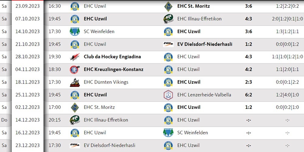 Nach dem Cup-Out kann sich der EHC Uzwil wieder voll auf die 2. Liga-Meisterschaft konzentrieren. Nach drei Siegen wollen die Hawks an die Erfolgsserie anknüpfen und den begonnenen Höhenflug fortsetzen. Ein Blick auf die Tabelle (vgl. weiter unten) lässt erahnen, was mit drei weiteren Siegen möglich wäre.
