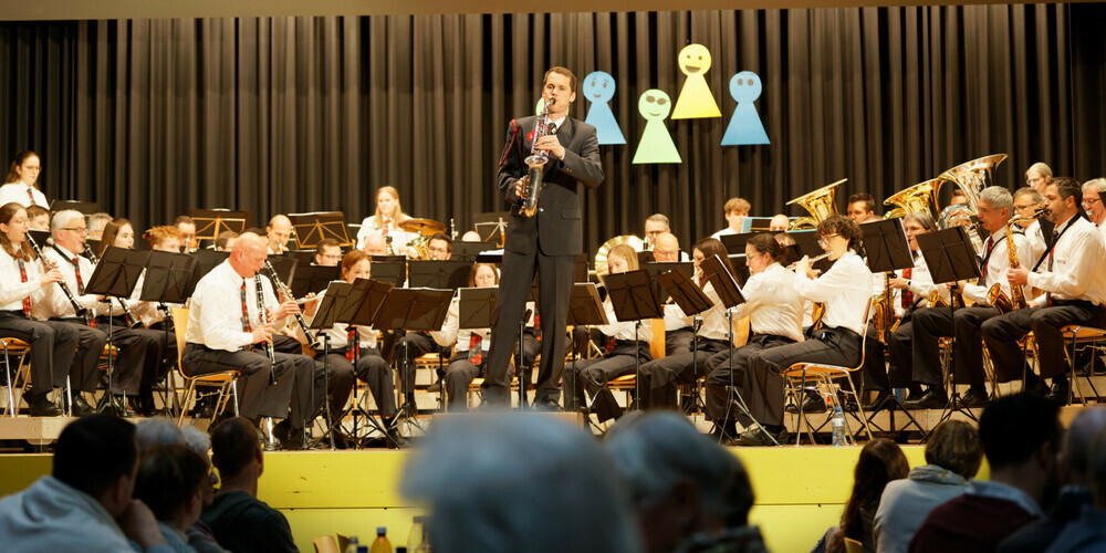 Die MGBO unter der Leitung von Dominik Eugster präsentierte das anspruchsvolle Konzertstück "Into the Raging River" von Steven Reineke, mit den Solisten Ian Needham, Flurina Näf und Peter Weiss. Im „Jackson 5 Medley“ übernahm Dirigent Eugster selbst das Sax-Solo, während Remo Baltensperger mit dem Flügelhorn brillierte. Die Vielseitigkeit zeigte sich auch in der gelungenen Interpretation von Eduard Strauss' Polka "Bahn frei".