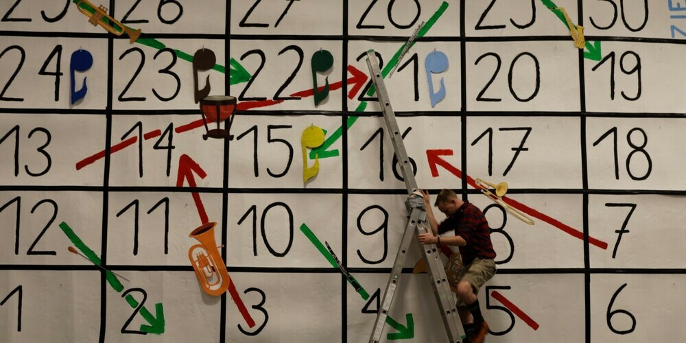 Mit dem Eröffnungsmarsch "Centurion" erfolgte der Auftakt, inklusive eines virtuosen Basssolos. Präsident Leo Neuländner begrüsste die Gäste und Moderator Andi Aebli führte das Publikum in die Regeln des überdimensionalen „Leiterlispiels“ ein. Danach wurde in fünf Gruppen um den Sieg gespielt.