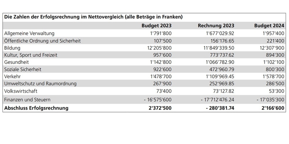 Bei Aufwänden von rund 28,2 Millionen Franken und Einnahmen von fast 28,5 Millionen Franken schliesst die Jahresrechnung mit einem Gewinn von Fr. 280'381.74 ab. Der Gemeinderat hat vorbehältlich der Zustimmung der Bürgerschaft entschieden, den Ertragsüberschuss vollumfänglich in den Bilanzüberschuss zu legen. Das Jahresergebnis 2023 ist erfreulich, budgetiert war ein Aufwandüberschuss von 2,37 Millionen Franken. Dies ergibt eine Besserstellung von 2,65 Millionen Franken. Der Gemeinderat budgetierte detailliert und stellte alle bekannten Ausgaben ein. Die Abweichungen sind einerseits darin begründet, dass verschiedene geplante Ausgabenposten wegen Verzögerungen wie Einsprachen oder noch nicht rechtskräftige Projekten nicht benötigt wurden und mit den vorhandenen Finanzmitteln haushälterisch umgegangen wurde: In fast allen Funktionen des bewilligten Budgets wurde die Ausgabenseite nicht ausgeschöpft. Andererseits war die Ertragsseite einmal mehr schwierig abzuschätzen – der Mehrertrag aus den diversen Steuerarten von über 1,1 Millionen Franken ist erfreulich (siehe Bericht).