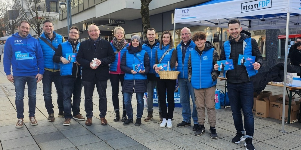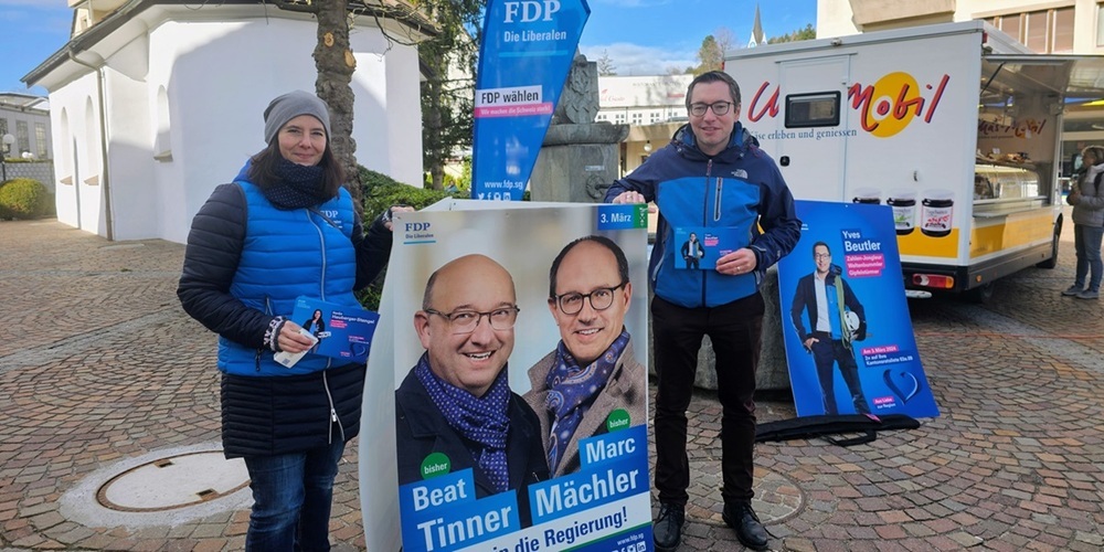 Ein starker Auftritt der FDP-Kandidierenden für den Kantonsrat in der Oberen Bahnhofstrasse in Wil am Samstag, 24. Februar 2024! Eine Woche vor dem Wahltermin am 3. März 2024 erwiesen auch die beiden FDP-Regierungsräte Marc Mächler und Beat Tinner der Äbtestadt die Ehre.