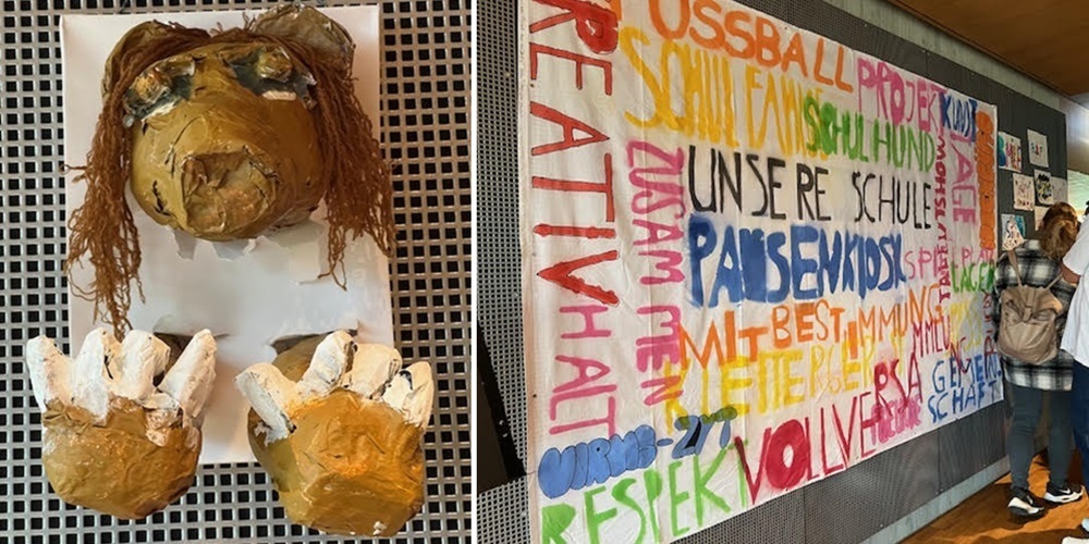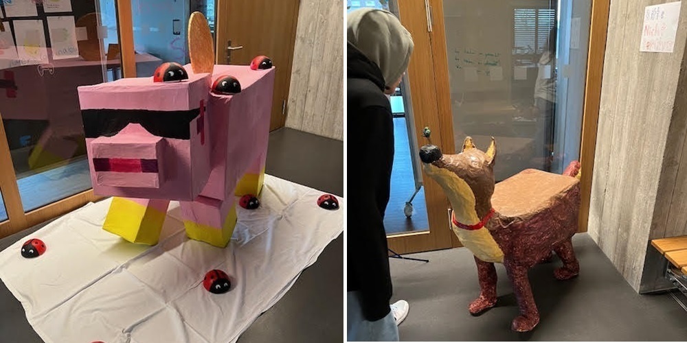Die Ausstellung zeichnet sich durch eine Vielfalt an Techniken und Materialien aus. Mit Papier, Holz, Stoff und weiteren Materialien haben die jungen Künstlerinnen und Künstler ihre grenzenlose Kreativität unter Beweis gestellt. Das zentrale Thema der Ausstellung war die Gestaltung von Tieren in Lebensgrösse – ein Projekt, das in den letzten Monaten mit grosser Begeisterung in allen Klassen umgesetzt wurde. Neben diesen imposanten Gruppenarbeiten umfasst die Ausstellung zahlreiche Einzelstücke, die in einer speziellen Projektwoche nach Ostern entstanden sind.