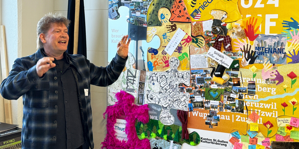 Ein besonderes Highlight der Eröffnung waren die von den 22 Gemeinden gestalteten individuellen Puzzleteile, die Pascal Mettler zu einem Gesamtkunstwerk zusammenführte. Erstmalig wird die Kulturbühne 2024 auch durch einen "Live-Stream Promotionsfilm" begleitet, der die Vielfalt und Energie der Veranstaltung einfangen und einem globalen Publikum präsentieren wird.