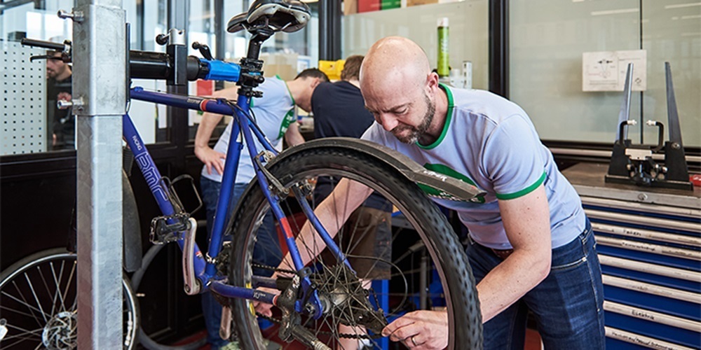 Die HPV Uzwil-Flawil im Kanton St. Gallen ist eine traditionsreiche Einrichtung für Menschen mit Beeinträchtigung. Das Angebot des 1962 gegründeten Vereins reicht von Schule und Ausbildung über Arbeits- und Verdienstmöglichkeiten bis zu Betreuung und Wohnen. Zum «Tag der guten Tat» haben sich Mitarbeitende aus dem Leitungsteam der Coop-Verkaufsregion Ostschweiz Tessin vorgenommen, einen Tag lang in der Produktionsstätte Niederuzwil SG mitzuhelfen beim Konfektionieren von Produkten, beim Reparieren von Fahrrädern und bei der Herstellung von Accessoires. «Heute haben unsere Leute besonders Freude, weil das Team von Coop da ist, und sie unterstützt bei der Arbeit», berichtet Mikel Toplanaj.