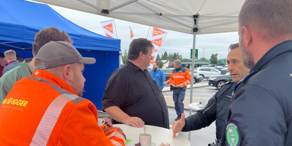Zusammen mit den beiden Verbänden ASTAG und Les Routiers Suisses hat die Kantonspolizei St.Gallen den zweiten Chauffeur/-innen-Treff erfolgreich durchgeführt. Bei Kaffee und Gipfeli standen Polizisten und Chauffeur/-innen auf der Raststätte Thurau im Austausch miteinander. Für einmal ging es nicht darum, eine Verkehrskontrolle durchzuführen, sondern um den persönlichen Kontakt in einer ungezwungenen Atmosphäre. Es standen Themen wie Ruhezeit, technische Änderungen oder Ladungssicherheit im Vordergrund. Spezialisten der Verkehrspolizei standen zudem für Anliegen rund um fachspezifische Fragestellungen zur Verfügung. Die gesetzlichen Vorschriften rund um das Thema Schwerverkehr sind komplex und einem ständigen Wandel unterworfen. Dies kann für die Chauffeur/-innen in ihrer täglichen Arbeit eine Herausforderung sein. Aus diesem Grund ist der gegenseitige Austausch sowie auch das gegenseitige Verständnis wichtig.