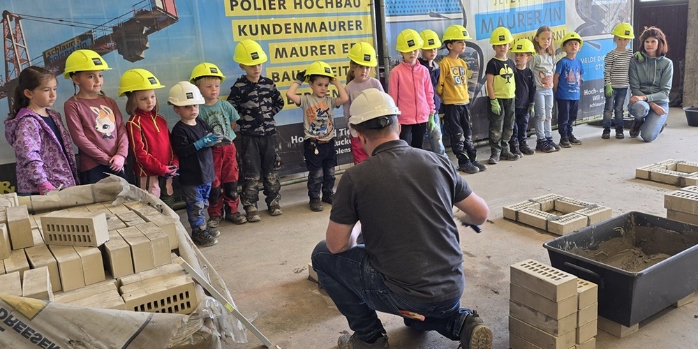 Die initiative Lehrperson Manuela Egli vom Kindergarten Zuckenriet behandelte in den letzten Wochen mit ihren 15 Kindern das Thema Baustelle. Am 12. Juni 2024 bot sich nun Gelegenheit, das Thema in der Praxis kennen zu lernen. Ermöglicht hatte dieses "Baupraktikum" das einheimische Bauunternehmen Schlauri + Holenstein AG, das sich mit grossem Engagement dafür einsetzte, dass die Kinder einen umfassenden Eindruck vom Bauen erhielten. Nimmt man die Begeisterung der Kinder zum Massstab, dürfte der Fachkräftemangel im Bau bald kein Problem sein. Helm auf und an die Arbeit!