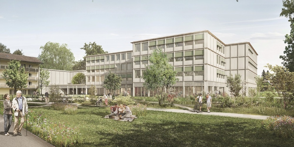 Die Projektverfasser bauen ihren Entwurf auf der Basis des Richtprojektes auf, das sie sehr gekonnt und überzeugend weiterentwickeln. Der Grundriss des Schulhauses ist windmühlenartig um einen grossen Lichthof aufgebaut, der die Innenräume der Schule sehr grosszügig belichtet. Mit der differenzierten Staffelung des Schulhauses wird dieses grosse Gebäude in seiner Volumetrie verträglich gemacht. Die Grundrisse sind hervorragend entworfen worden, die Nutzungseinheiten sind klug platziert und funktional geplant und verfügen nicht nur über betriebliche, sondern auch hohe räumliche Qualitäten. Durch die subtile architektonische Ausformulierung der neuen Bauten entsteht ein respektvoller Dialog zwischen der neuen Schulanlage und dem bestehenden Seniorenzentrum. Die von der Gemeinde definierte übergeordnete Leitidee des Verwebens der Generationen scheint in selbstverständlicher Art und Weise Bestandteil des Projektes geworden zu sein. Das Projekt besticht durch seine Einbettung in den Grünraum. Der Sportplatz wird in den Park platziert. Damit wird einerseits die Umgebung der Bauten grüner und weicher, anderseits wird damit der Park belebt. Der Entwurf bildet für den zukünftigen Neubau des Schulhaues und der Turnhalle eine sowohl soziologisch wie pädagogisch und architektonisch optimale Ausgangslage für das Gelingen.