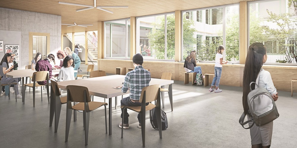 Das neue Schulhaus in der Zone für öffentliche Bauten und Anlagen in der Sonnmatt nutzt Synergien mit dem SeniorenZentrum Sonnmatt. Es umfasst 18 Klassenzimmer, Gruppenräume und die erforderlichen Fachzimmer für Chemie, Physik, Gestalten und Werken. Dazu kommen Lernzonen, Aufenthalts- und Verpflegungsräume etc. Zum Vorhaben gehört eine Dreifachturnhalle, weil heute aufgrund der Entwicklung der Schülerzahlen die verfügbaren Turnhallen überbelegt sind. Geplant ist das Schulhaus als Holz-Hybridbau aus zertifiziertem Schweizer Holz. Das Vorhaben soll das Minergie-P ECO-Label erfüllen. Das Siegerprojekt weist eine Geschossfläche von gut 14‘000 Quadratmeter und ein Volumen von rund 63‘000 Kubikmeter auf. Es liegt damit leicht unter dem Durchschnitt der Projekte im Wettbewerb.