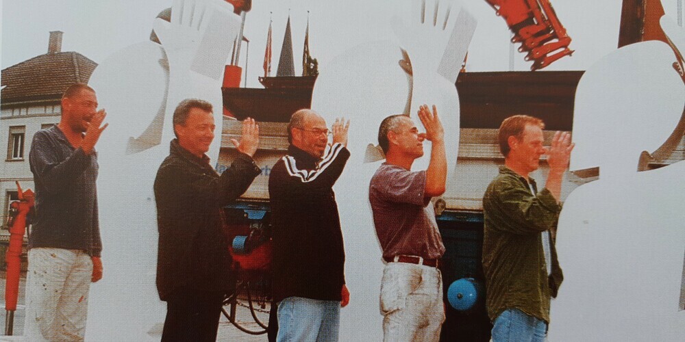 Der Einstand der Künstlergruppe Ohm 41 war unübersehbar: In einer spektakulären Überraschungsaktion verhüllte sie vor rund 25 Jahren eine Betonskulptur auf dem Wiler Bahnhofplatz.