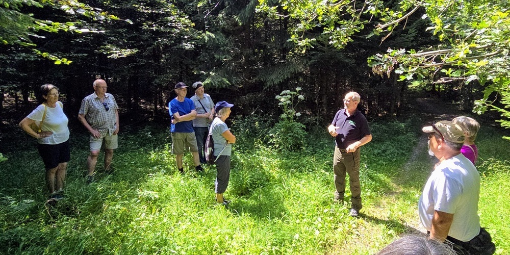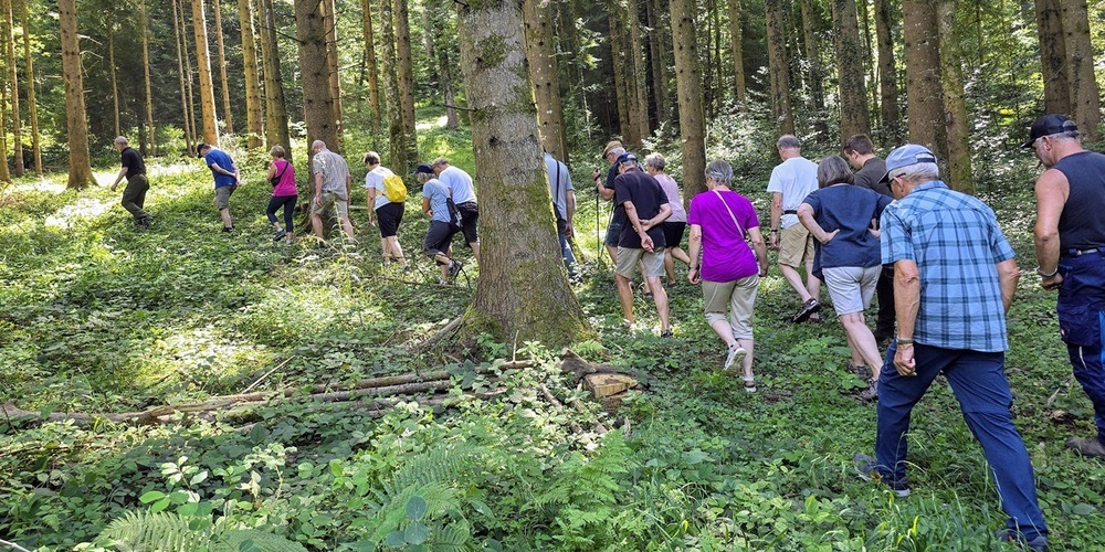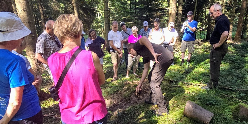 Posten 7 - Mario Böhi zeigte den Teilnehmenden der Waldführung auch eine Stelle, wo ein Dachs nach Nahrung gegraben hatte: