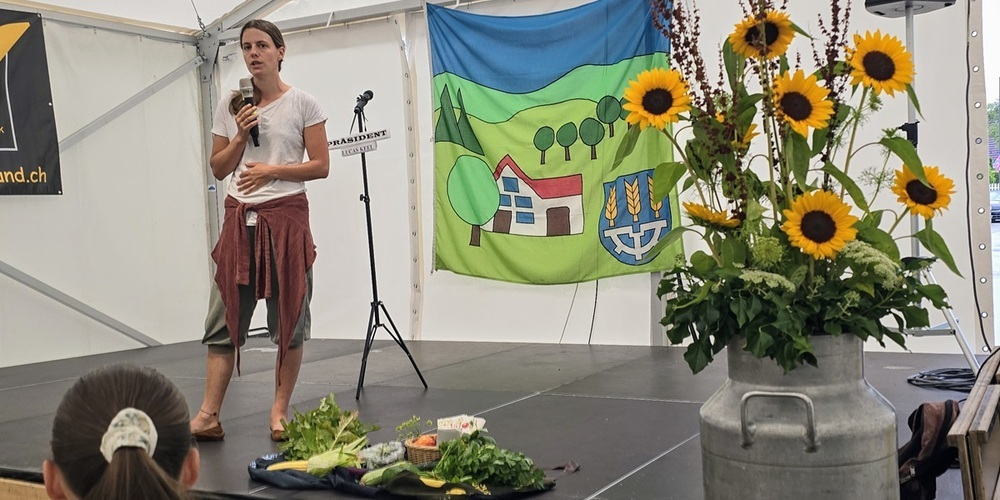 Liliane Kesseli vom Solawi-Hof Rütiwies in Algetshausen stellte das vor Ort umgesetzte Konzept der Solidarischen Landwirtschaft vor.