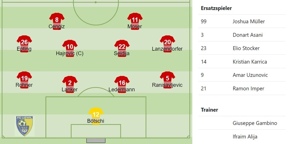 | 14. | FC Uzwil | 6 | 1 | 2 | 3 | 8 | : | 14 | -6 | 5 | |