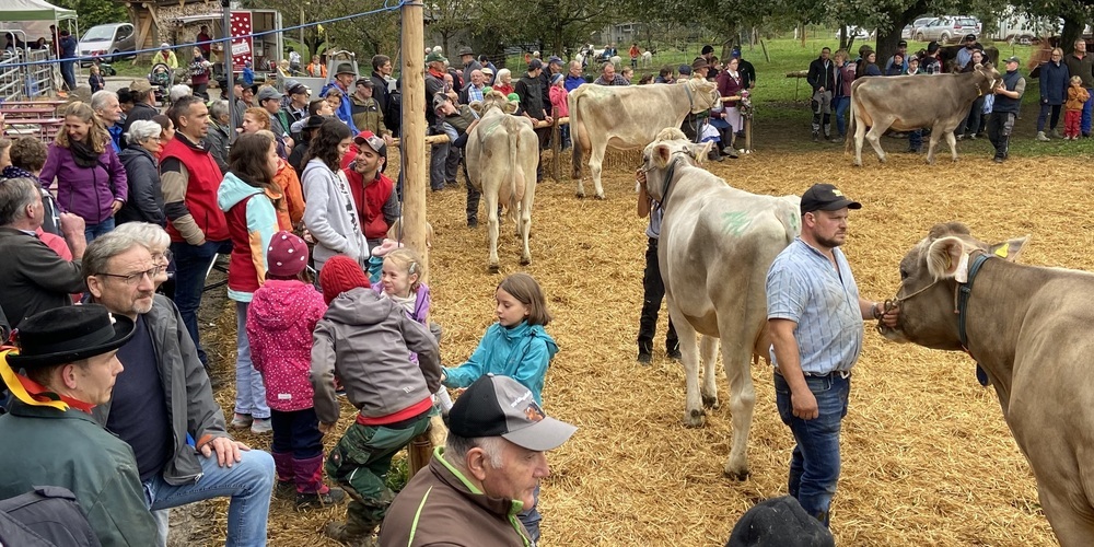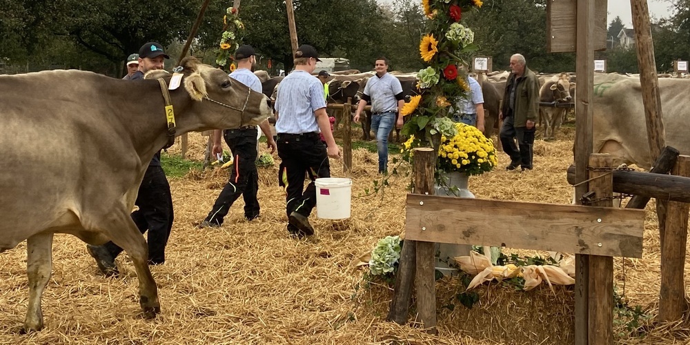 Obwohl sich der Himmel am Mittwoch, 16. Oktober, nicht von seiner Sonnenseite zeigte, genossen Gross und Klein die Viehschau Henau-Oberuzwil am neuen Standort auf dem Landhof Watt in Niederglatt. Die Kuh San Marina aus dem Stall von Wendelin Dudli, Niederglatt, wurde zur Miss Henau-Oberuzwil gekürt.