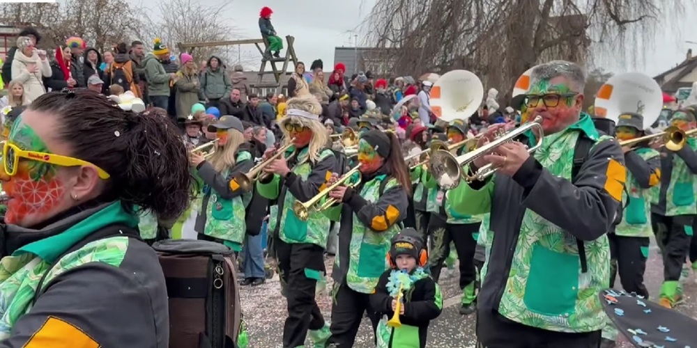 Nachmittags um 15:03 Uhr treffen sich fasnachtsbegeisterte Gruppen und Guggenmusigen in Schwarzenbach für den Fasnachtsumzug.