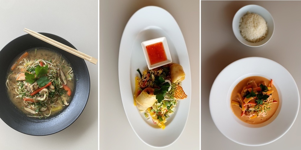 wahlweise mit gebratener Crevette oder hausgemachten Frühlingsrollen