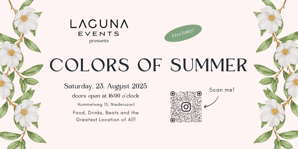 Mit dem Event am 23. August - „Colors of Summer“ - möchte das Team der Laguna Events der lokalen Gemeinschaft und allen weiteren Interessierten die Möglichkeit geben, das Team kennenzulernen, Fragen zu stellen und gemeinsam einen farbenfrohen Sommerabend zu geniessen. Essensstände, eine Bar und ein stimmungsvolles Bühnenprogramm werden den Abend zu etwas ganz Besonderem machen.