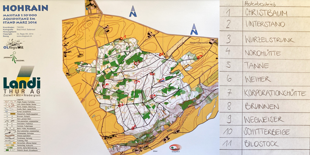 Auf der Website der Jungwacht konnte bzw. kann die Laufkarte mit elf eingezeichneten Posten ausgedruckt werden. An den ersten beiden Tagen waren die Temperaturen angenehm warm, sodass doch einige OL-Fans, Jungwacht- und Jubla-Kinder sowie mehrere Familien die Gelegenheit für sportliche Betätigung nutzten. Am Karsamstag jedoch blieb die Teilnehmerzahl sehr bescheiden, was vor allem dem kalten Wetter geschuldet war.