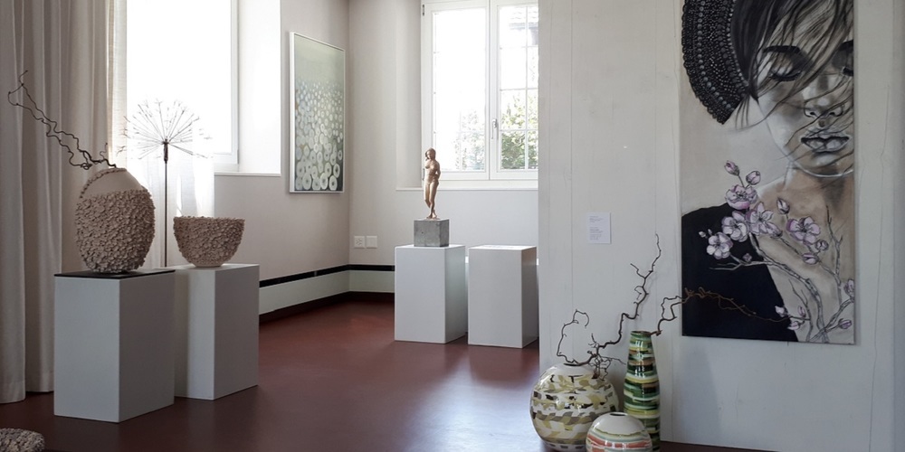 Die Bilder von Tanja Strausak vermitteln einen Hauch Japan. Ausdrucksstarke Portraits, gleichzeitig zart und verletzlich, wie die Kirschblüte. Die aufwendige japanische Nerikomi Technik findet sich in den Porzellan Arbeiten von Linda Ludolini. Das Thema Blüten zeigt sich auch in der Britischen Zuckerkunst von Cathrin Strehler sowie der Kunst am Kleid von Katharina Rupp. Esther Wiesli widmet sich in figürlich abstrakten Bildern dem Spiel von Wind und Wasser. Die Lust am Bade zeigt sich auch in den, eigensinnigen und witzigen Holzarbeiten von Angela Galli. Wiesen, die sich alle Jahre in schimmernde Teppiche verwandeln inspirierten Claudia Wenger zu ihren gemalten Löwenzahnfeldern im künstlerischen Dialog mit der Naturinstallation von Gerda Schweizer. Geschöpfe von Mechtild Mayer, Vögel von Margrit Keller und kleine chaotische Wesen, von Patricia Brandt lassen nicht nur Mutter Erde lächeln.