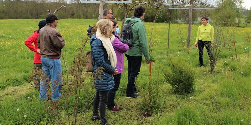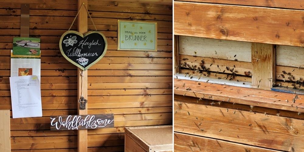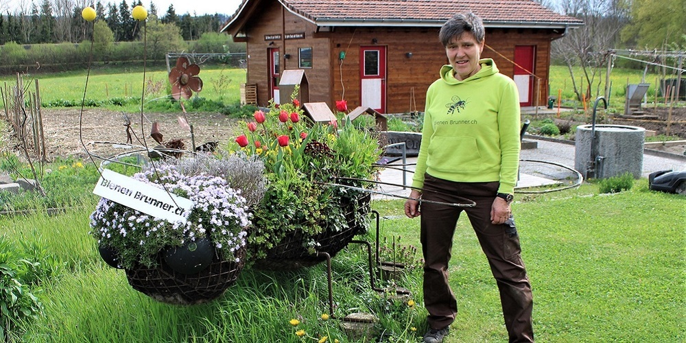 Cécile Brunner führte ihre Gruppe rund um das Bienenhaus. Dabei wies sie auf die Bedeutung der Pflanzen- und Blumenvielfalt mit verschiedenen Blütenzeiten hin. Das wird von Brunner’s beim Bepflanzen von Hecken mit vielfältigen Pflanzen und Sträuchern und auch im Blumengarten berücksichtigt. Bienen brauchen viel Wasser, was ebenfalls beachtet werden müsse und vor allem sei auch eine aufmerksame Beobachtung der Insekten wichtig. Über Bienenstiche weiss die Heilkundige, dass diese Stiche ausser bei extremen Allergikern harmlos sind und das Bienengift sogar bei der Aktivierung der Cortisonbildung eine positive gesundheitliche Wirkung hat. Die Biene steche nur, wenn sie sich bedroht fühle. «Wenn sie von einer Biene gestochen werden, tut es zwar ein bisschen weh, zugleich wirkt das Bienengift positiv auf das Immunsystem – also müsste man eigentlich danke sagen», sagte Cécile Brunner. Im Wintergarten des Wohnhauses stellte sie die verschiedenen Produkte, ihre Eigenschaften und Wirkungen vor. Die Besuchenden konnten sich bei kleinen Kostproben selber ein Bild machen.