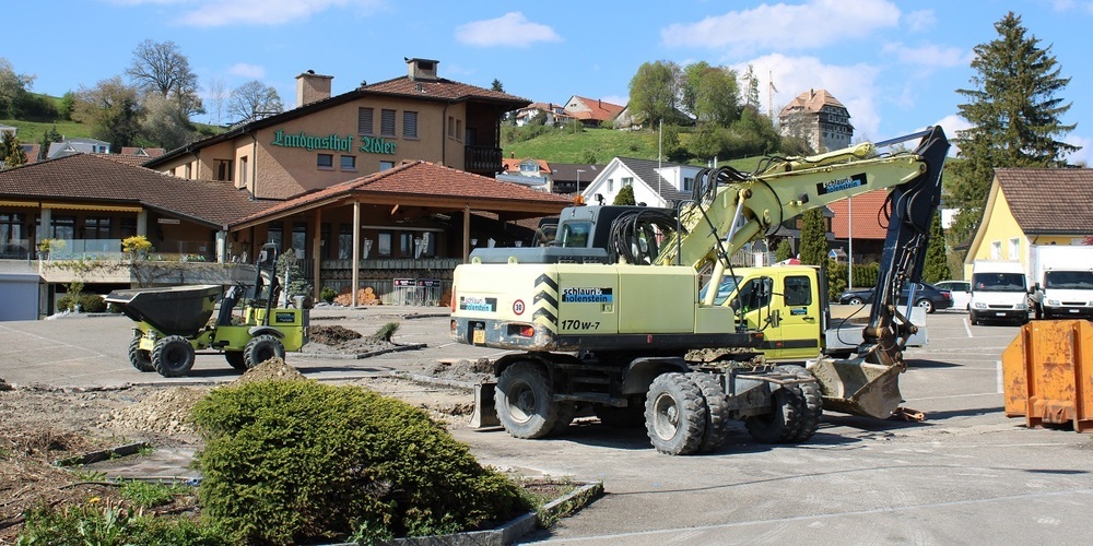 Die Corona-Pandemie zeigt auch beim renommierten Landgasthof Adler in Zuckenriet bedeutende Auswirkungen. Seit vielen Monaten musste der Betrieb eingestellt werden. Neben dem Totalausfall der Gastronomie gibt es jedoch auch einen positiven Aspekt. Die Besitzerfamilie Marcel und Romy Mettler plant einen Neubau eines zweigeschossigen Wohnhauses mit zusätzlichem Attikageschoss auf dem grossen Parkplatz. Nach längerer Planungs- und Wartezeit erhielt die Adler Zuckenriet AG für dieses Bauvorhaben die Baubewilligung. Weil der normalerweise stark frequentierte Parkplatz aktuell wegen ausfallender Kundschaft nicht benutzt wird, kann nun der Baubeginn ohne grosse Einschränkungen stattfinden. Am 3. Mai fuhren die ersten Baumaschinen der Zuckenrieter Firma Schlauri + Holenstein AG auf, um die notwendigen Vorbereitungen für die Tiefbauarbeiten in Angriff zu nehmen. Am 10. Mai wurde bereits der Baukran aufgestellt.