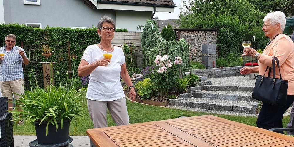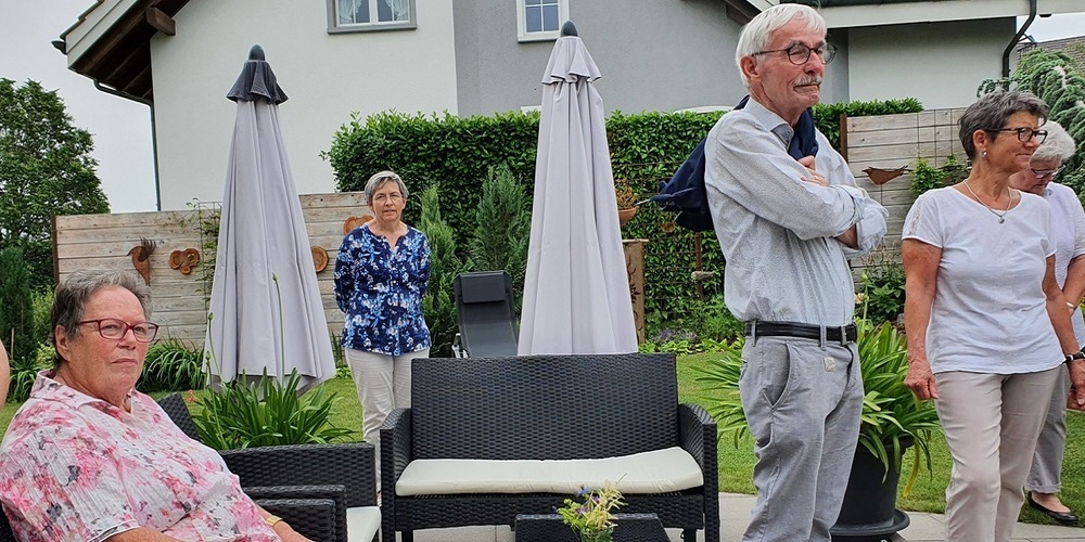 Die Präsidentin Lilian Schlauri hatte die Sängerschar eingeladen, gemeinsam am Johannni-Gottesdienst teilzunehmen. Eine erfreulich grosse Schar war der Einladung gefolgt. Der Gottdienst mit Pater Didier Mungolingi und die Predigtworte der Seelsorgerin Katrin Blome beeindruckten. Eigentlich hatte der Chor für diesen Tag eine Mundartmesse mit Alphornbegleitung vom Uzwiler Komponisten Roman Bislin geplant – aber Corona war dagegen. Dafür durfte die Sängerschar die herrlichen Klänge von Orgel und Alphornbläsern geniessen, organisiert von der Organistin Antonia Widmer.