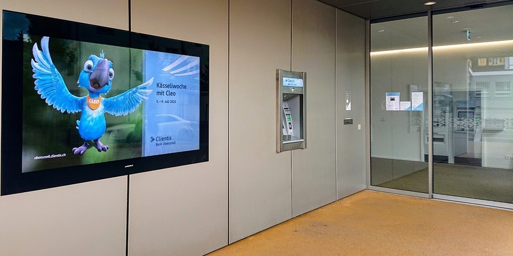 Diese Woche "regiert" Cleo mit seiner Kässeli-Aktion bei der Clientis Bank Oberuzwil.