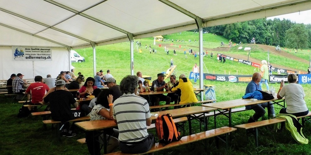 Auch aus dem Festzelt beste Sicht auf das Renngeschehen.