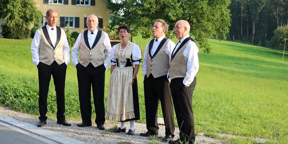 Nach einer eindrücklichen Einstimmung der Jodelgruppe SingSoloBim begrüsste Pater Erich Schädler die Anwesenden beim Wegkreuz. Es befindet sich seit 1924 an dieser Stelle und wurde vor 13 Jahren restauriert. Das Kreuz steht auf dem Boden der Familie Eilinger und wird von ihnen liebevoll gepflegt.